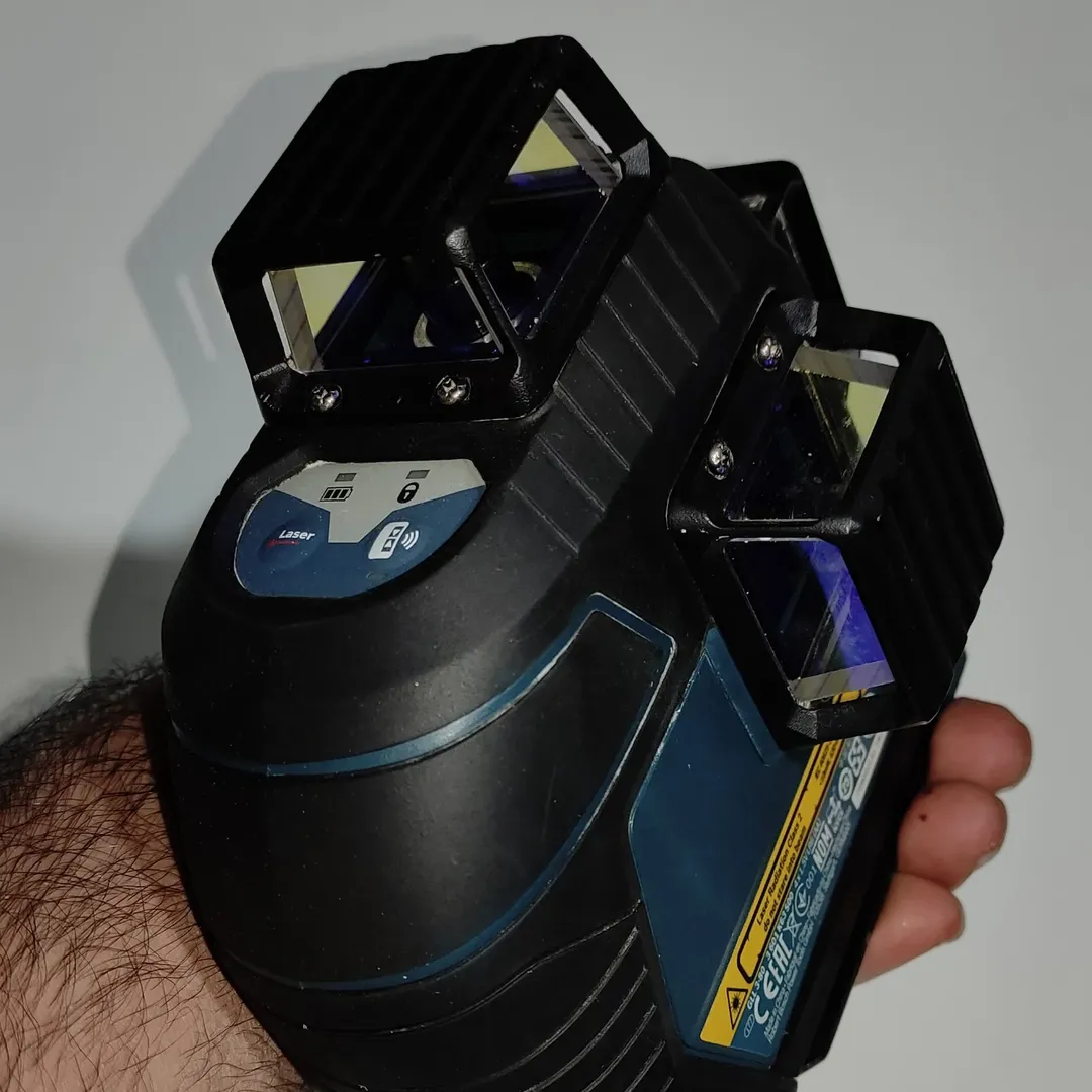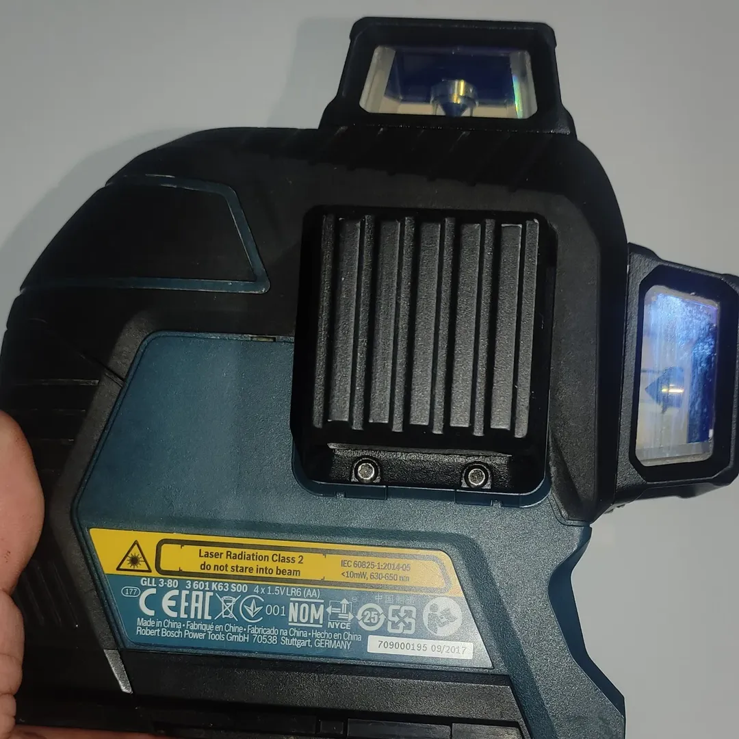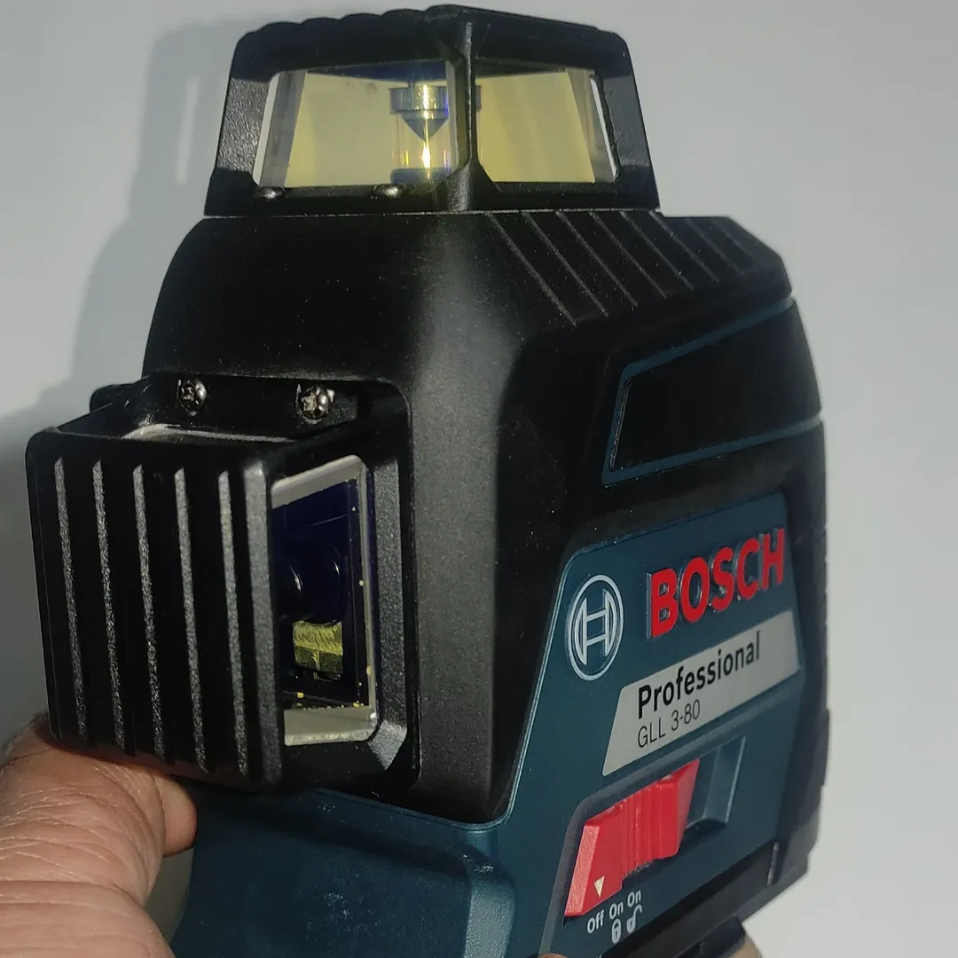 تراز لیزر بوش مدل نور قرمز با تغذیه دستگاه باطری قلمی ۴ عدد و کلید تنظیم چشمی ها لمسی. همراه با کیف برزنتی فابریک و درجه سنج.